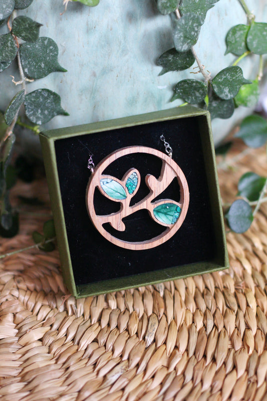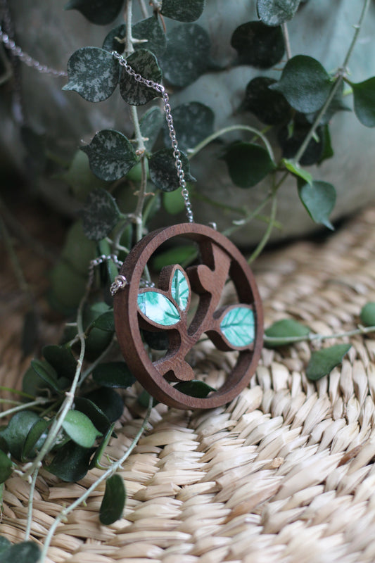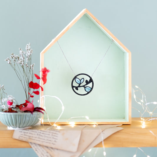 Collana foglie fiabesca in legno e mosaico | Upsidu
