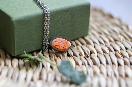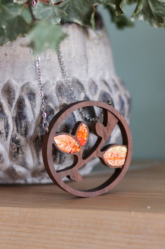 Collana foglia autunnale in legno e mosaico | Upsidu