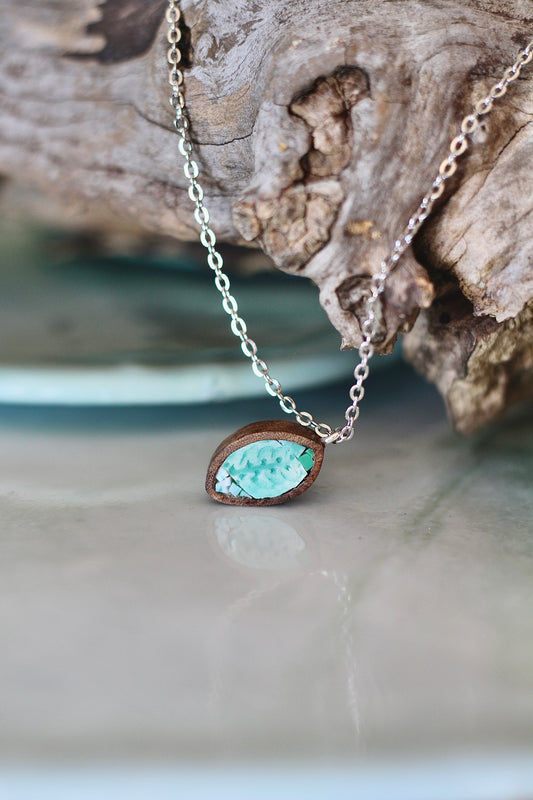 Collana girocollo con ciondolo foglia verde acqua | Upsidu