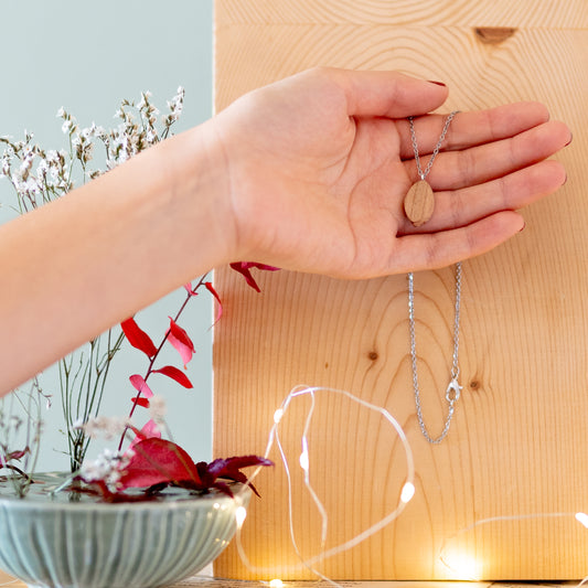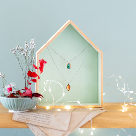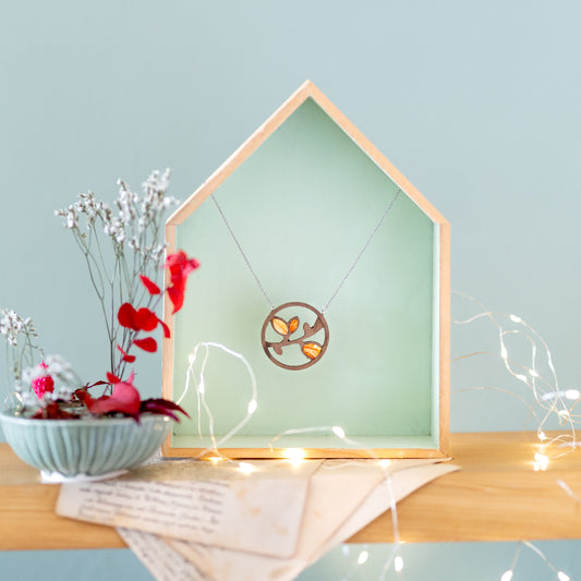 Collana fiabesca foglie in legno e mosaico | Upsidu