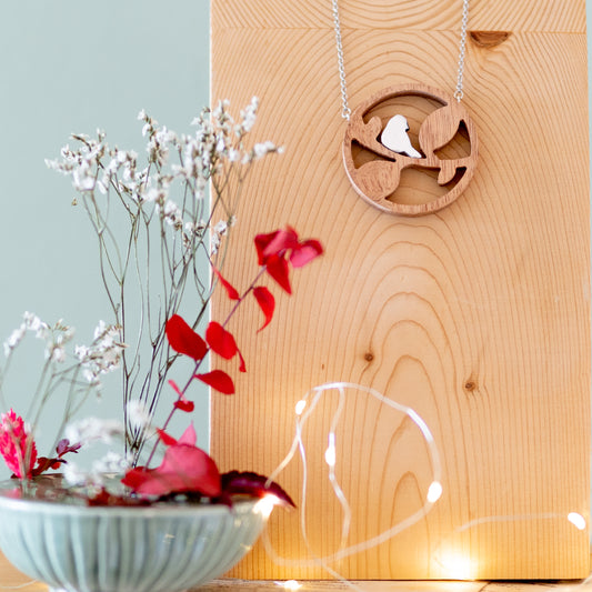 Collana fiabesca uccellino in legno e mosaico | Upsidu