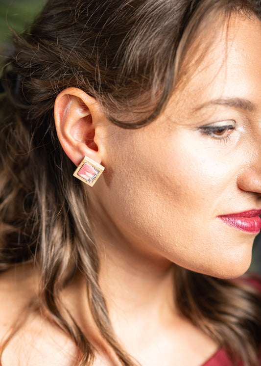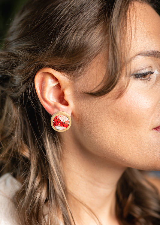 Orecchini quadrati in legno e mosaico rossi | Upsidu