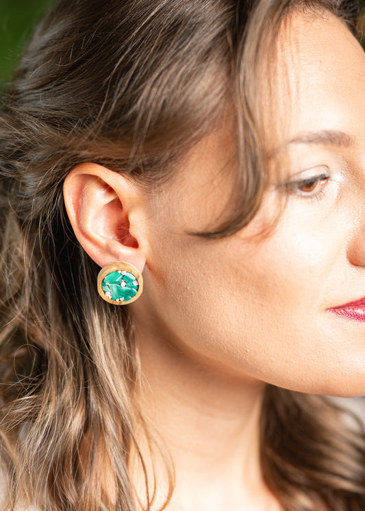 Orecchini a lobo in legno e mosaico verdi | Upsidu