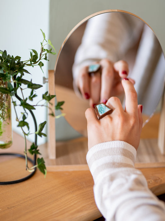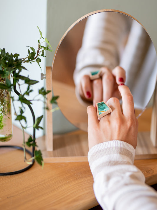 Orecchini particolari in legno e mosaico verdi | Upsidu