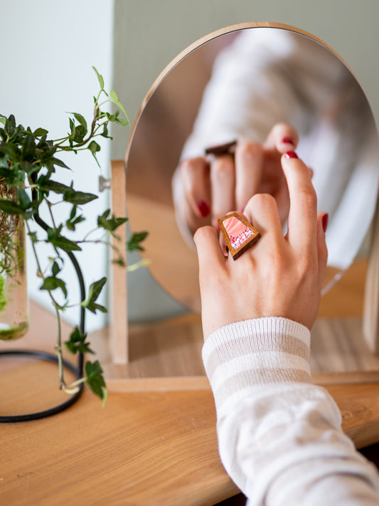 Orecchini particolari rosa in legno e mosaico | Upsidu