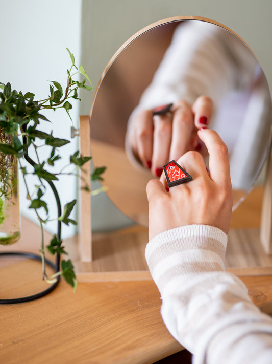 Orecchini esagonali rossi in legno e mosaico | Upsidu