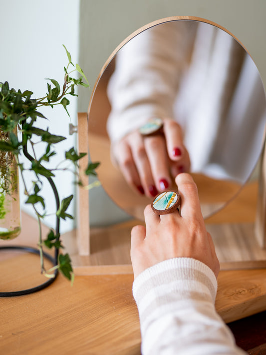 Anello particolare in legno e mosaico | Upsidu