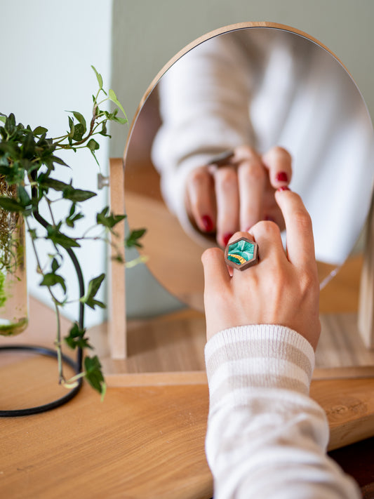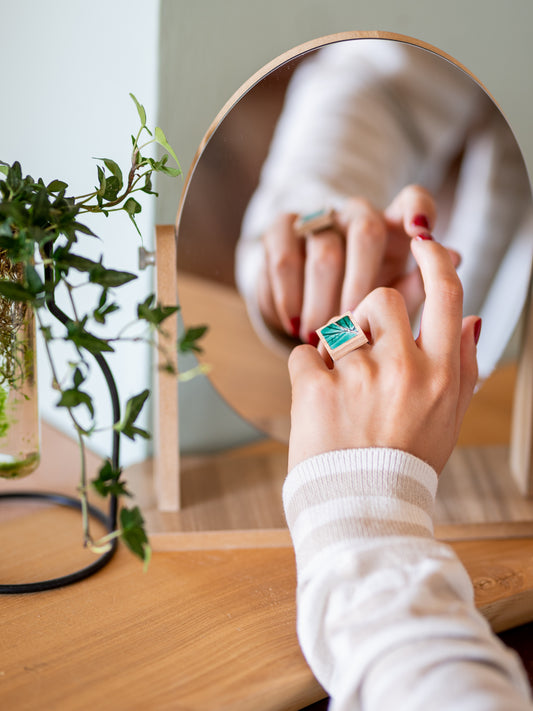 Anello verde in legno e mosaico | Upsidu