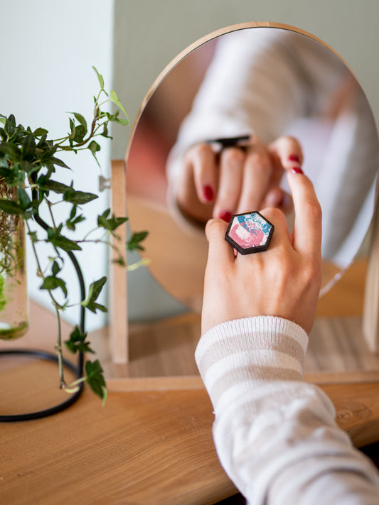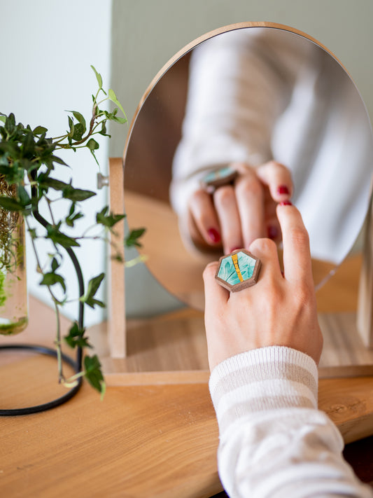 Anello esagonale particolare in legno e mosaico | Upsidu