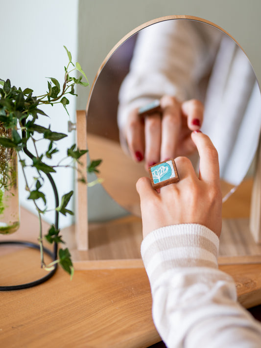 Anello artigianale in legno e mosaico | Upsidu