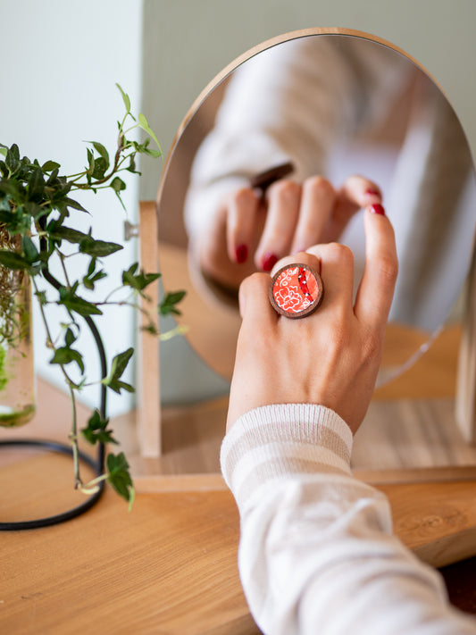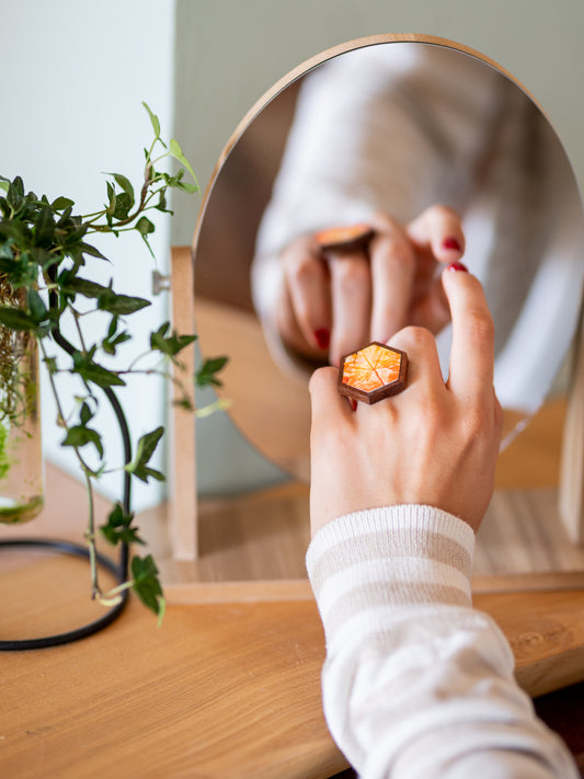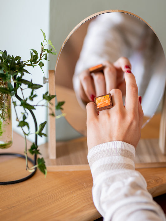 Anello quadrato arancione in legno e mosaico | Upsidu