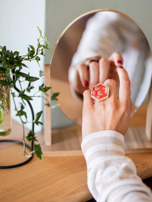 Anello rosso esagonale in mosaico | Upsidu