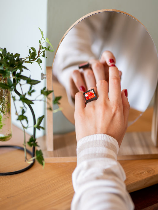 Anello artigianale quadrato rosso | Upsidu