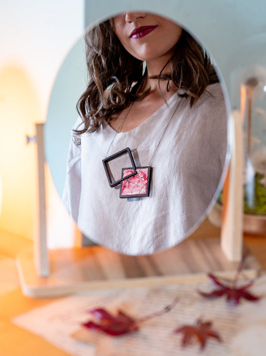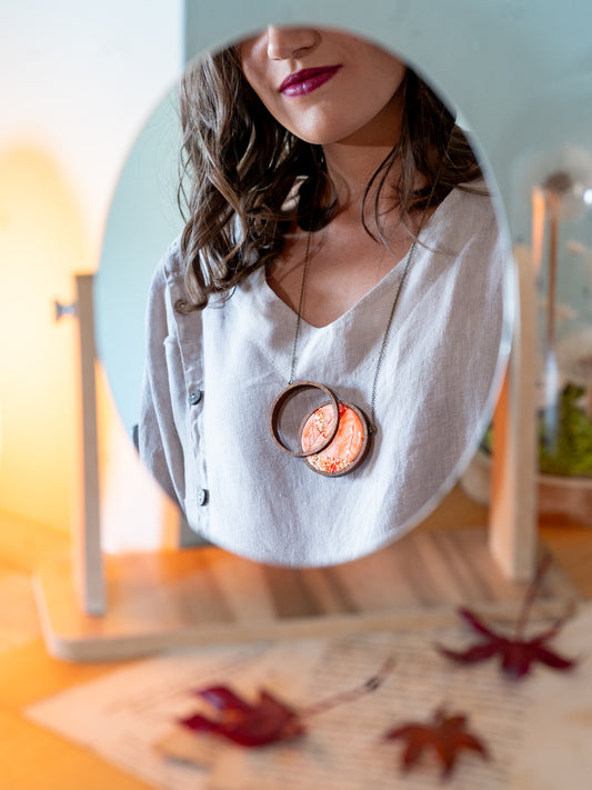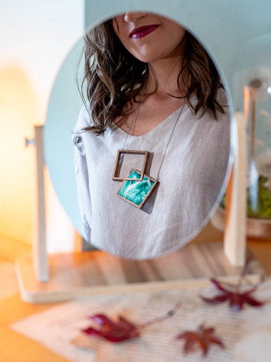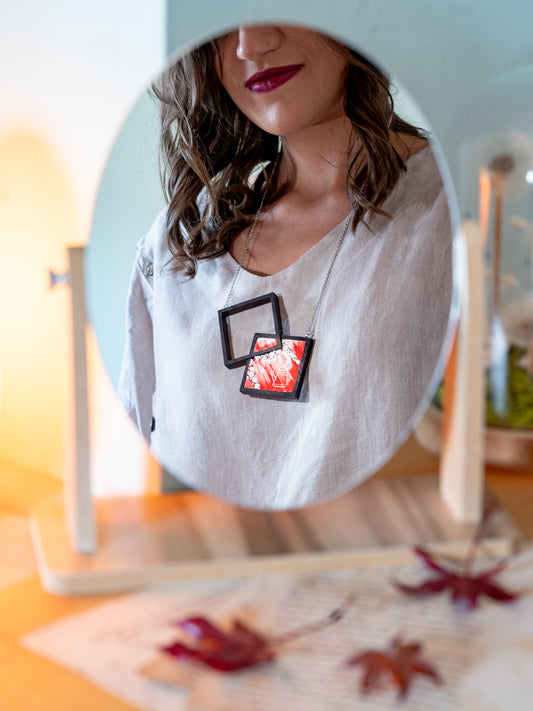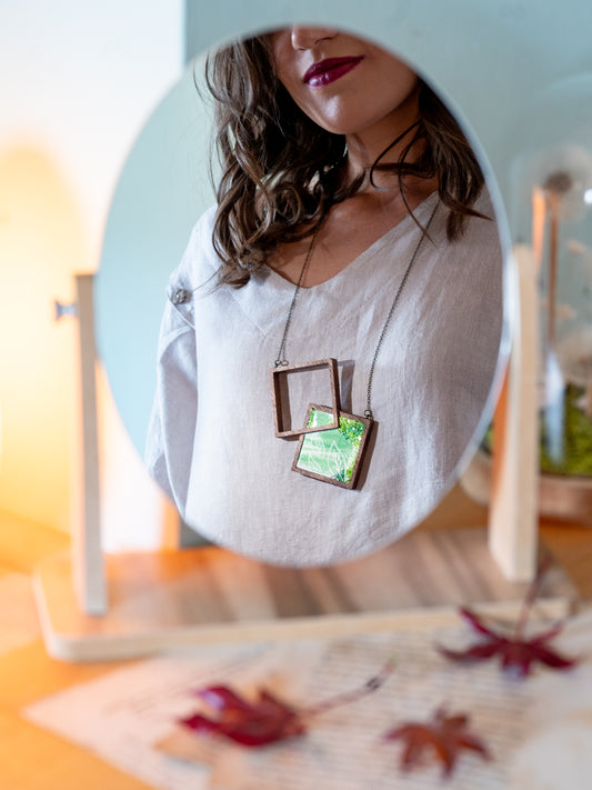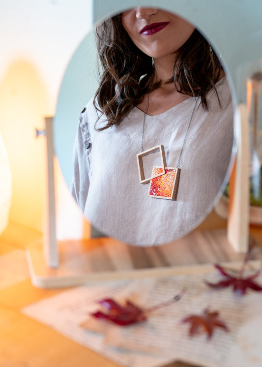 Collana fatta a mano particolare in legno e mosaico | Upsidu