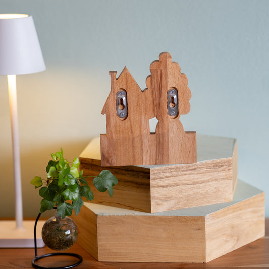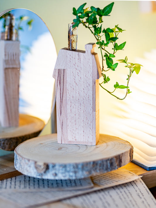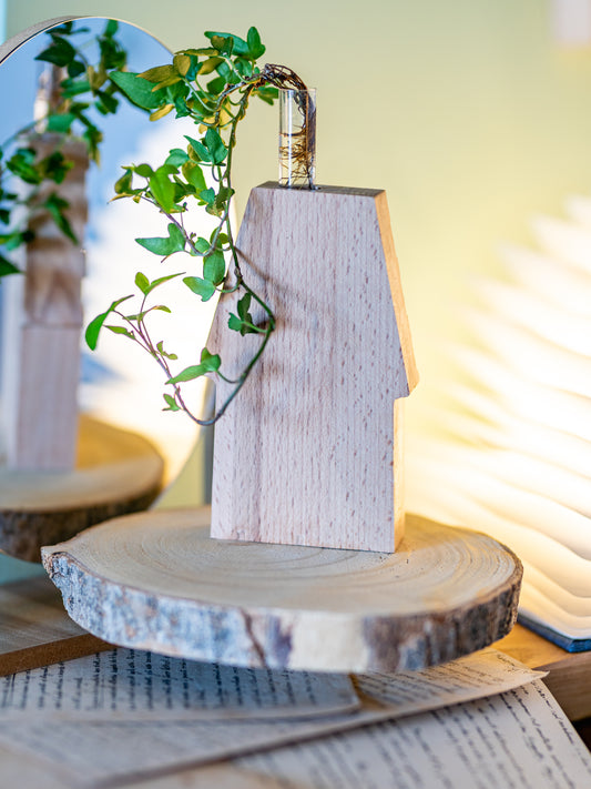 Vaso per provette in legno e mosaico a forma di casa | Upsidu